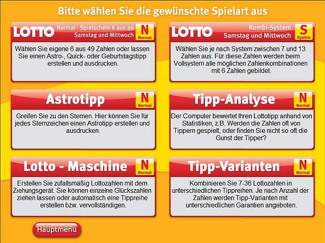 Wieder zurück beim Hauptmenü wird diesmal die Lotto-Maschine gewählt.