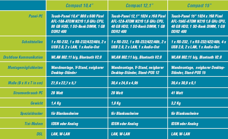 Der Panel-PC ist mit einem benutzerfreundlichen Touchscreen sowie verstellbarem Standfuß ausgestattet und bietet Hightech auf kleinstem Raum. Compact-Modell ist ein Komplettsystem mit 10,4 / 12,1 oder 15 Zoll-Monitor.