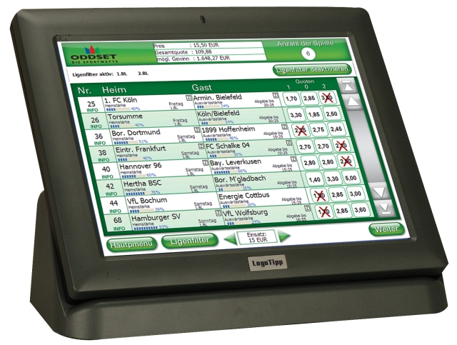 Das Tipp-Terminal unterstützt alle Formen der Datenübertragung: DSL genauso wie ISDN oder Analog-Modem. Vor dem Start einer Anwendung erfolgt eine selbständige Abfrage des Zentralrechners nach Programm- Updates, die in kürzester Zeit automatisch heruntergeladen werden. Dafür sind keine zusätzlichen Leitungen erforderlich. Modems werden einfach an die vorhandene Telefonanlage angeschlossen und bei Bedarf von LogoTipp angerufen. So entstehen Ihnen keine Telefonkosten.