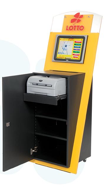 Das Tipp-Terminal Premium ist ein rollfähiges Standterminal, das sämtliche Systemkomponenten in einem eleganten Hochschrank unterbringt. Mit seinem wahlweise 15 Zoll-Touchscreen und beleuchtetem Display ein Highlight in jedem Verkaufsraum, begnügt es sich mit einer Stellfläche von gerade einmal 0,25 m2.